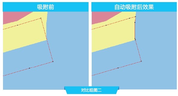 在线状地物转面、任意范围缓冲分析等过程中,针对缓冲端面与现状图斑边界不套合而出现的狭缝、碎小区等不利于成图的情况,添加自动吸附图斑边界功能。